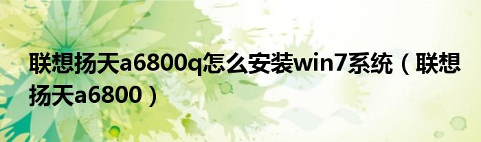 大家好,雨雨来为大家解答以上问题,联想扬天a6800q怎么安装win7系统,联想扬天a6800很多人还不知道,现在让我们一起来看看吧!