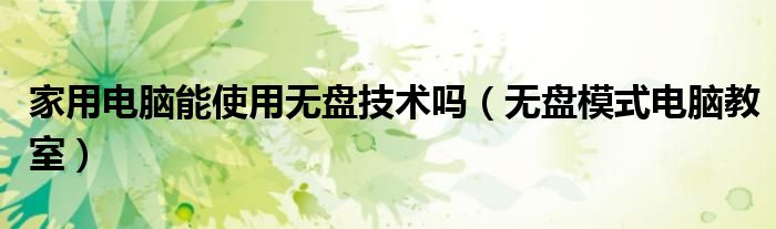大家好,雨雨来为大家解答以上问题,家用电脑能使用无盘技术吗,无盘模式电脑教室很多人还不知道,现在让我们一起来看看吧!