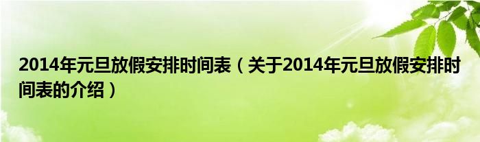 2014年元旦放假安排时间表(关于2014年元旦放假安排时间表的介绍)