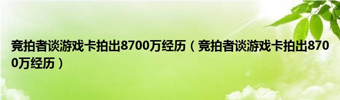 大家好,雨雨来为大家解答以上问题,竞拍者谈游戏卡拍出8700万经历,竞拍者谈游戏卡拍出8700万经历很多人还不知道,现在让我们一起来看看吧!