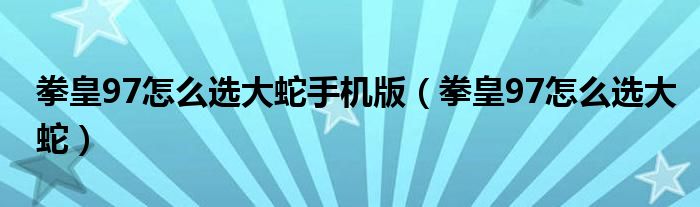 大家好,雨雨来为大家解答以上问题,拳皇97怎么选大蛇手机版,拳皇97怎么选大蛇很多人还不知道,现在让我们一起来看看吧!