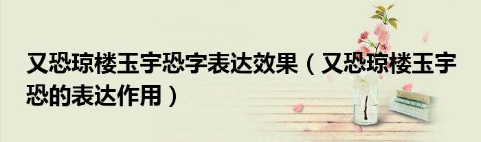 关于又恐琼楼玉宇恐字表达效果,又恐琼楼玉宇 恐的表达作用这个很多人还不知道,今天菲菲来为大家解答以上的问题,现在让我们一起来看看吧!