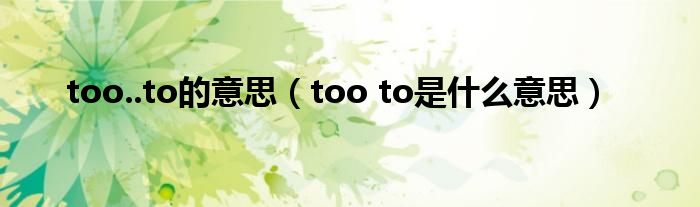 关于too..to的意思,too to是什么意思这个很多人还不知道,今天菲菲来为大家解答以上的问题,现在让我们一起来看看吧!