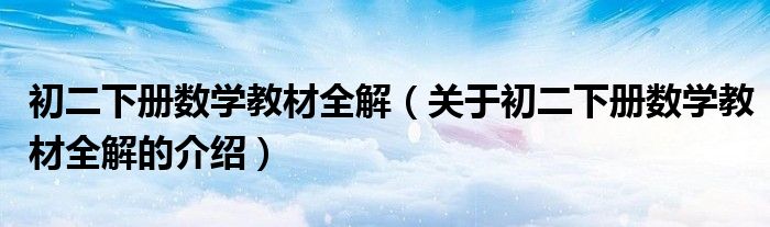 大家好,今天小乐来为大家解答以上的问题。初二下册数学教材全解,关于初二下册数学教材全解的介绍很多人还不知道,现在让我们一起来看看吧!