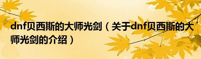 1、“贝西斯的大师光剑”是游戏地下城与勇士(DNF)中鬼剑士使用的一种武器。