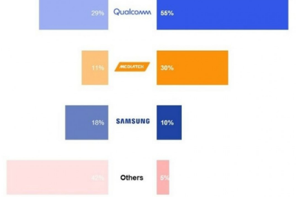 然而,在调制解调器和 5G 调制解调器方面,圣地亚哥公司以 55% 领先,而联发科以 30% 位居第二。
