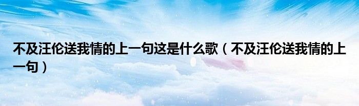 关于不及汪伦送我情的上一句这是什么歌,不及汪伦送我情的上一句这个很多人还不知道,今天菲菲来为大家解答以上的问题,现在让我们一起来看看吧!