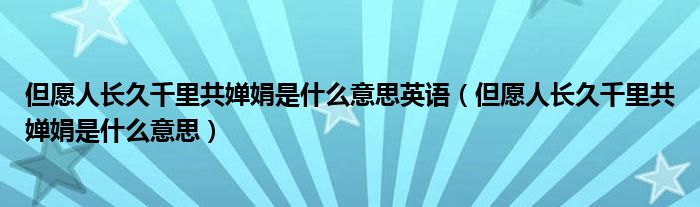 关于但愿人长久千里共婵娟是什么意思英语,但愿人长久千里共婵娟是什么意思这个很多人还不知道,今天菲菲来为大家解答以上的问题,现在让我们一起来看看吧!