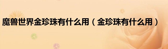 关于魔兽世界金珍珠有什么用,金珍珠有什么用这个很多人还不知道,今天菲菲来为大家解答以上的问题,现在让我们一起来看看吧!