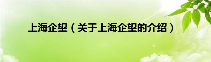 大家好,今天小乐来为大家解答以上的问题。上海企望,关于上海企望的介绍很多人还不知道,现在让我们一起来看看吧!