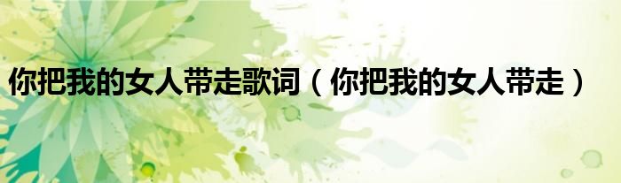 关于你把我的女人带走歌词,你把我的女人带走这个很多人还不知道,今天菲菲来为大家解答以上的问题,现在让我们一起来看看吧!