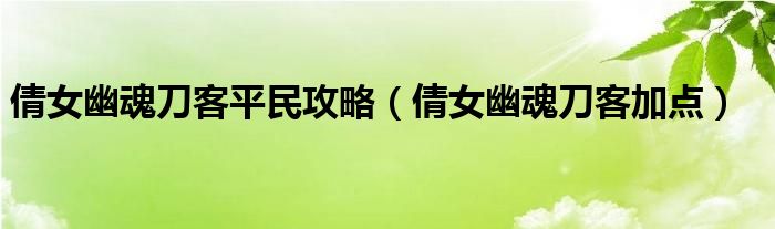大家好,雨雨来为大家解答以上问题,倩女幽魂刀客平民攻略,倩女幽魂刀客加点很多人还不知道,现在让我们一起来看看吧!