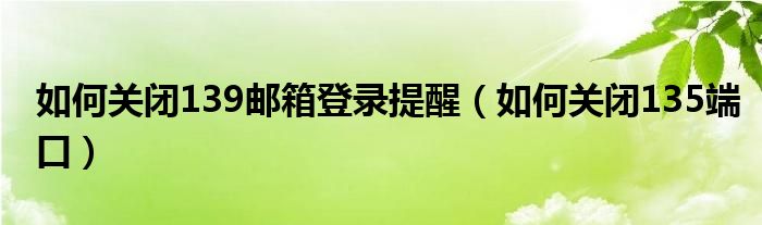大家好,雨雨来为大家解答以上问题,如何关闭139邮箱登录提醒,如何关闭135端口很多人还不知道,现在让我们一起来看看吧!
