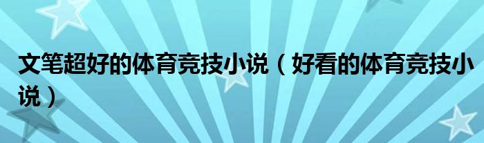 大家好,小晋来为大家解答以下问题,关于文笔超好的体育竞技小说,好看的体育竞技小说很多人还不知道,今天让我们一起来看看吧!