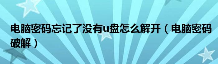 大家好,雨雨来为大家解答以上问题,电脑密码忘记了没有u盘怎么解开,电脑密码破解很多人还不知道,现在让我们一起来看看吧!