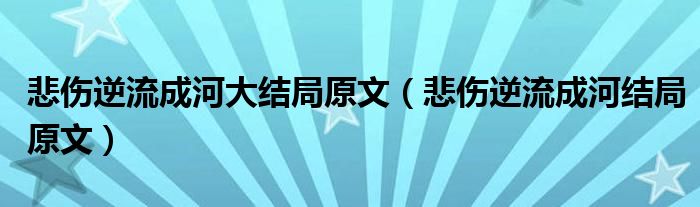大家好,小晋来为大家解答以下问题,关于悲伤逆流成河大结局原文,悲伤逆流成河结局原文很多人还不知道,今天让我们一起来看看吧!