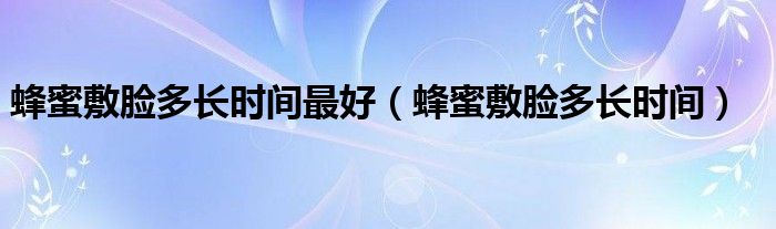 大家好,小晋来为大家解答以下问题,关于蜂蜜敷脸多长时间最好,蜂蜜敷脸多长时间很多人还不知道,今天让我们一起来看看吧!
