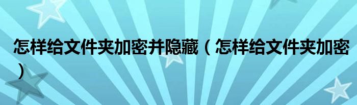 大家好,雨雨来为大家解答以上问题,怎样给文件夹加密并隐藏,怎样给文件夹加密很多人还不知道,现在让我们一起来看看吧!