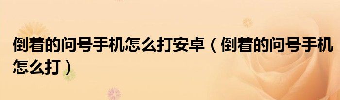大家好,小晋来为大家解答以下问题,关于倒着的问号手机怎么打安卓,倒着的问号手机怎么打很多人还不知道,今天让我们一起来看看吧!