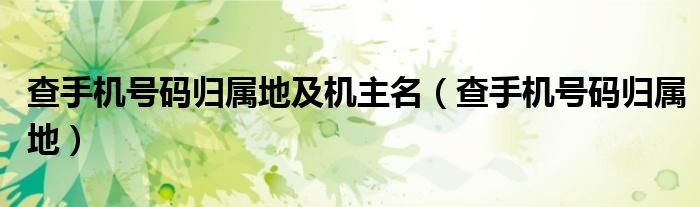 大家好,雨雨来为大家解答以上问题,查手机号码归属地及机主名,查手机号码归属地很多人还不知道,现在让我们一起来看看吧!