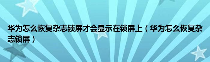 大家好,小晋来为大家解答以下问题,关于华为怎么恢复杂志锁屏才会显示在锁屏上,华为怎么恢复杂志锁屏很多人还不知道,今天让我们一起来看看吧!