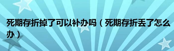关于死期存折掉了可以补办吗,死期存折丢了怎么办这个很多人还不知道,今天菲菲来为大家解答以上的问题,现在让我们一起来看看吧!