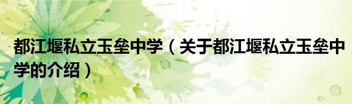 都江堰私立玉垒中学(关于都江堰私立玉垒中学的介绍)