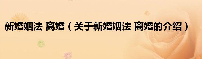 大家好,今天小乐来为大家解答以上的问题。新婚姻法 离婚,关于新婚姻法 离婚的介绍很多人还不知道,现在让我们一起来看看吧!