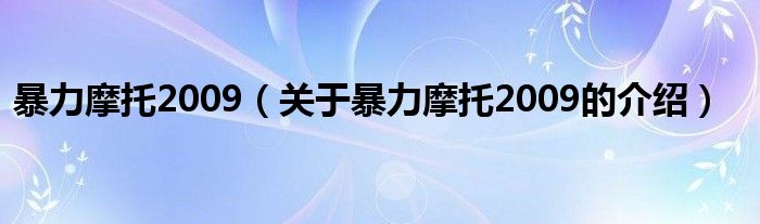 大家好,今天小乐来为大家解答以上的问题。暴力摩托2009,关于暴力摩托2009的介绍很多人还不知道,现在让我们一起来看看吧!