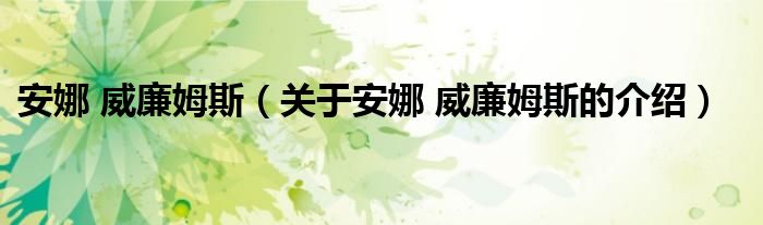 大家好,今天小乐来为大家解答以上的问题。安娜 威廉姆斯,关于安娜 威廉姆斯的介绍很多人还不知道,现在让我们一起来看看吧!