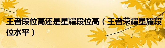 大家好,小晋来为大家解答以下问题,关于王者段位高还是星耀段位高,王者荣耀星耀段位水平很多人还不知道,今天让我们一起来看看吧!