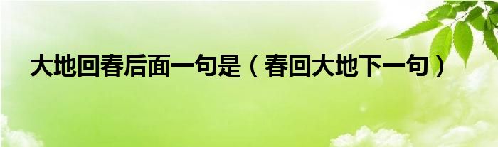 大家好,小晋来为大家解答以下问题,关于大地回春后面一句是,春回大地下一句很多人还不知道,今天让我们一起来看看吧!