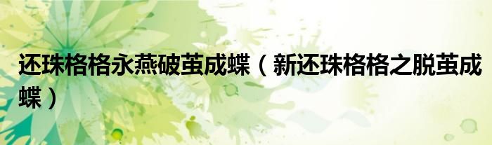 大家好,小晋来为大家解答以下问题,关于还珠格格永燕破茧成蝶,新还珠格格之脱茧成蝶很多人还不知道,今天让我们一起来看看吧!