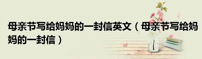 关于母亲节写给妈妈的一封信英文,母亲节写给妈妈的一封信这个很多人还不知道,今天菲菲来为大家解答以上的问题,现在让我们一起来看看吧!