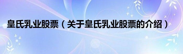 大家好,小都来为大家解答以上的问题。皇氏乳业股票,关于皇氏乳业股票的介绍很多人还不知道,现在让我们一起来看看吧!