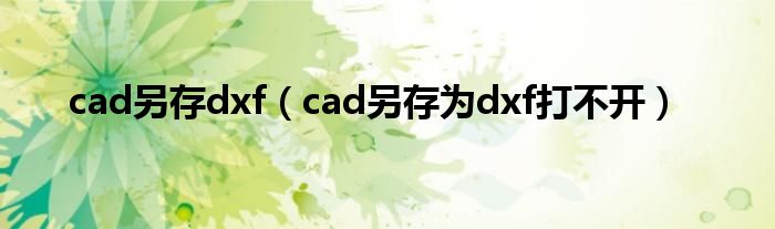 关于cad另存dxf,cad另存为dxf打不开这个很多人还不知道,今天菲菲来为大家解答以上的问题,现在让我们一起来看看吧!