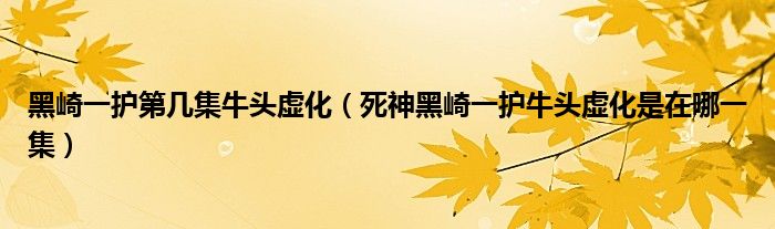 关于黑崎一护第几集牛头虚化,死神黑崎一护牛头虚化是在哪一集这个很多人还不知道,今天菲菲来为大家解答以上的问题,现在让我们一起来看看吧!