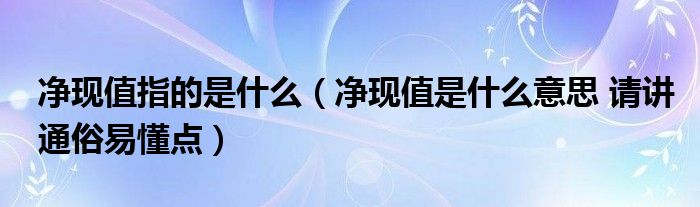 关于净现值指的是什么,净现值是什么意思 请讲通俗易懂点这个很多人还不知道,今天菲菲来为大家解答以上的问题,现在让我们一起来看看吧!