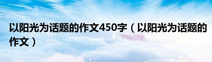 关于以阳光为话题的作文450字,以阳光为话题的作文这个很多人还不知道,今天菲菲来为大家解答以上的问题,现在让我们一起来看看吧!