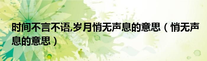 关于时间不言不语,岁月悄无声息的意思,悄无声息的意思这个很多人还不知道,今天菲菲来为大家解答以上的问题,现在让我们一起来看看吧!