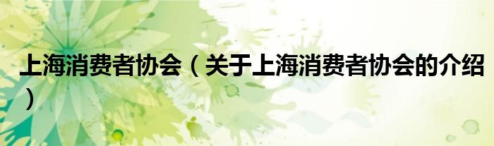 1、上海市消费者权益保护委员会(Shanghai Consumers Council)是依据《中华人民共和国消费者权益保护法》、经上海市人民政府批准设立的非政府组织。
