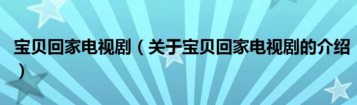 宝贝回家电视剧(关于宝贝回家电视剧的介绍)