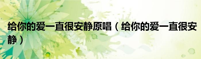 关于给你的爱一直很安静原唱,给你的爱一直很安静这个很多人还不知道,今天菲菲来为大家解答以上的问题,现在让我们一起来看看吧!