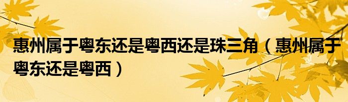 关于惠州属于粤东还是粤西还是珠三角,惠州属于粤东还是粤西这个很多人还不知道,今天菲菲来为大家解答以上的问题,现在让我们一起来看看吧!