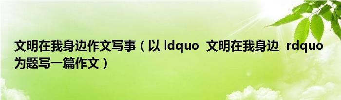 关于文明在我身边作文写事,以 ldquo 文明在我身边 rdquo 为题写一篇作文这个很多人还不知道,今天菲菲来为大家解答以上的问题,现在让我们一起来看看吧!