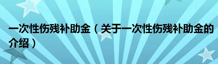 一次性伤残补助金(关于一次性伤残补助金的介绍)