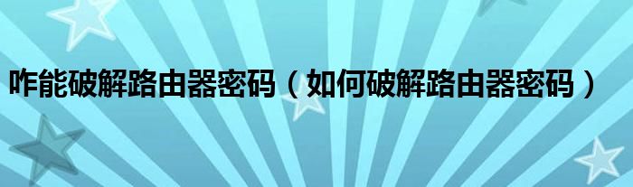 大家好,小飞来为大家解答以上问题,咋能破解路由器密码,如何破解路由器密码很多人还不知道,现在让我们一起来看看吧!