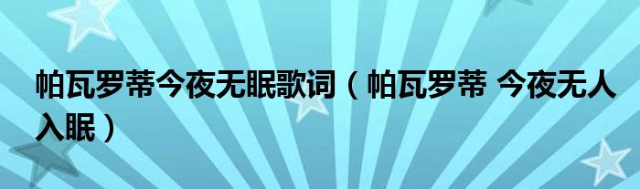 帕瓦罗蒂今夜无眠歌词(帕瓦罗蒂 今夜无人入眠)