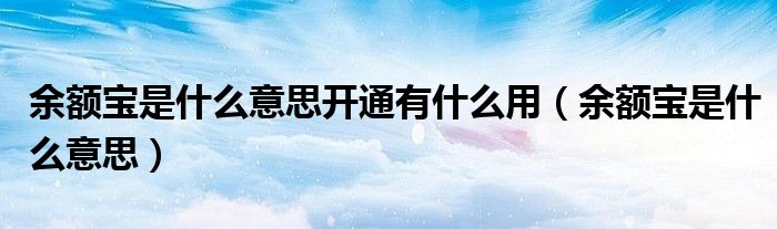 大家好,小飞来为大家解答以上问题,余额宝是什么意思开通有什么用,余额宝是什么意思很多人还不知道,现在让我们一起来看看吧!
