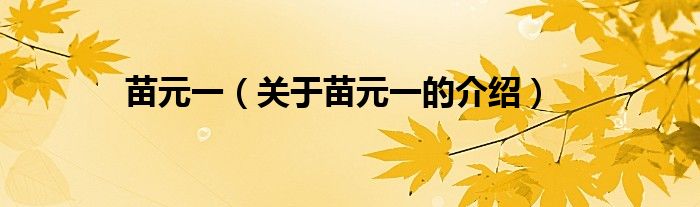 大家好,小都来为大家解答以上的问题。苗元一,关于苗元一的介绍很多人还不知道,现在让我们一起来看看吧!